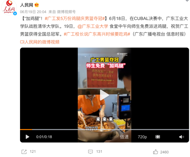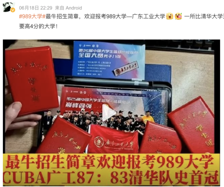 这回赢了清华4分,大家又开玩笑:欢迎报考广工,989大学。