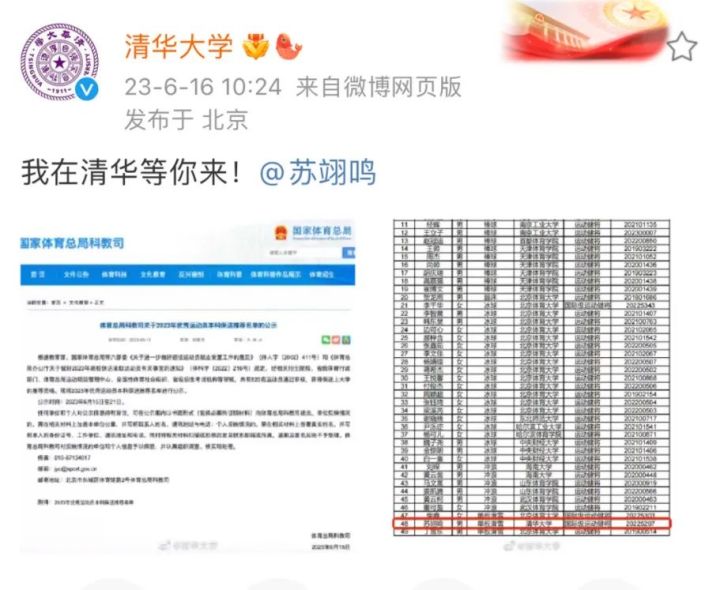 清华大学,话不多,丢出了即将入学的苏翊鸣:我在清华等你来。#这是我想来就来的吗?#