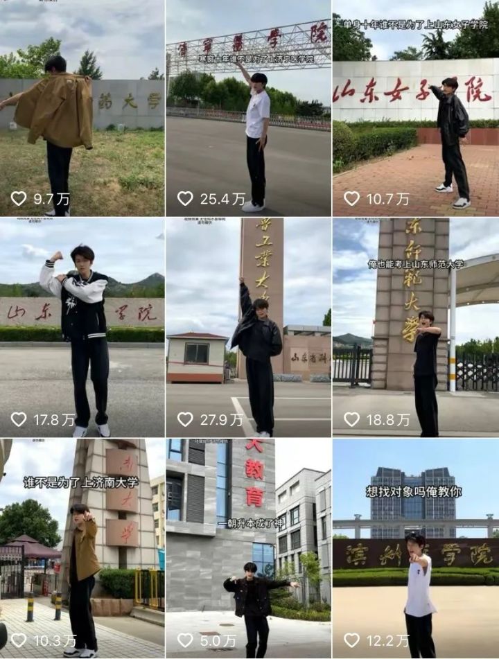 撞脸焦恩俊的博主@小能,明明是烟台科技学院的学生,却跑到鲁东大学门口,边用方言唱歌边跳舞,差点让鲁东大学招生办一年宣传白干。