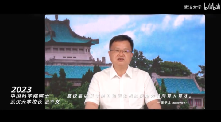 武大校长张平文,不仅出现在宣传片《新声》中,还参加了高招直播活动。