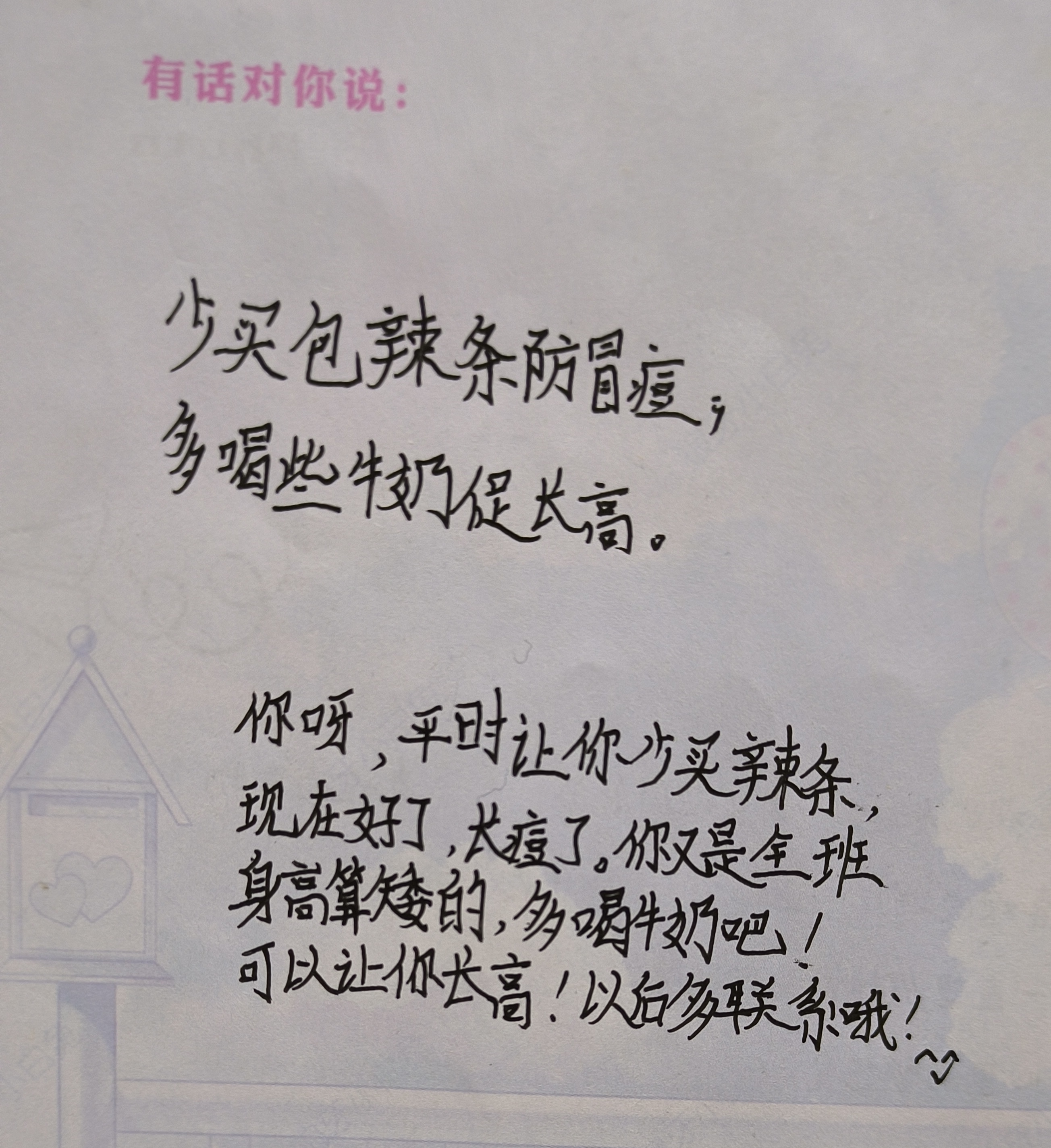 多喝些牛奶促长高。