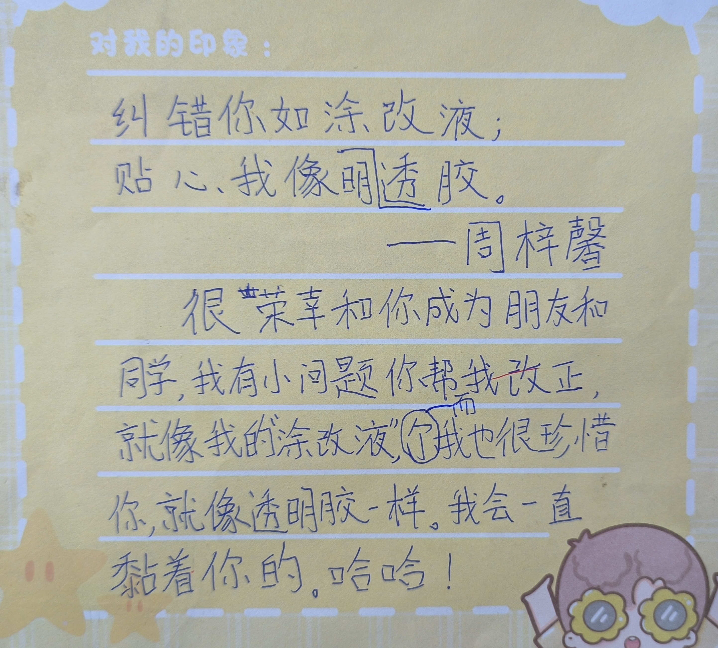 为全班同学撰写期末评语