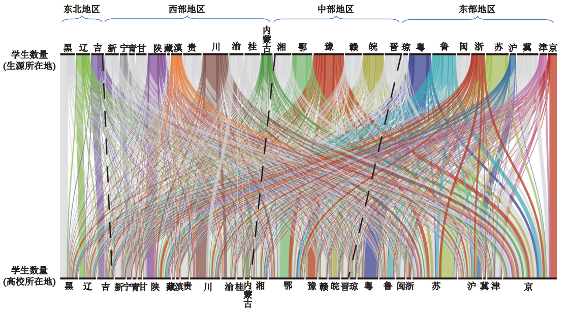 另一方面,作为中国人才流动的重要路径之一,高校学生的就学迁移网络较大程度塑造了高学历人力资本流动和再配置的格局,也对中国城际要素流动和东中西部区域协调发展具有潜在的基础性影响,因此有必要进行系统分析。