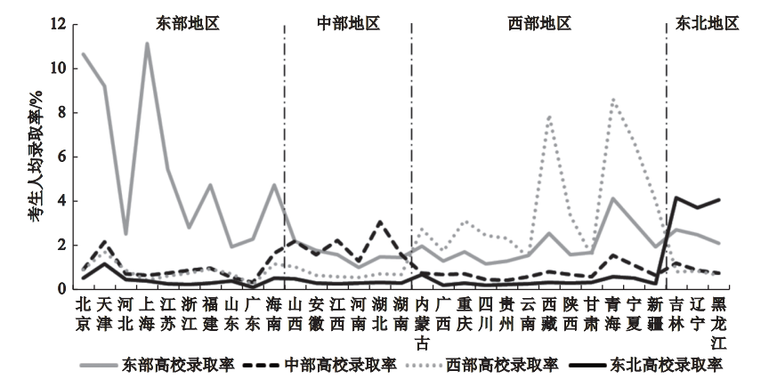 然而高等教育资源整体布局不均衡,不同省份之间享有高等教育的机会存在差异。