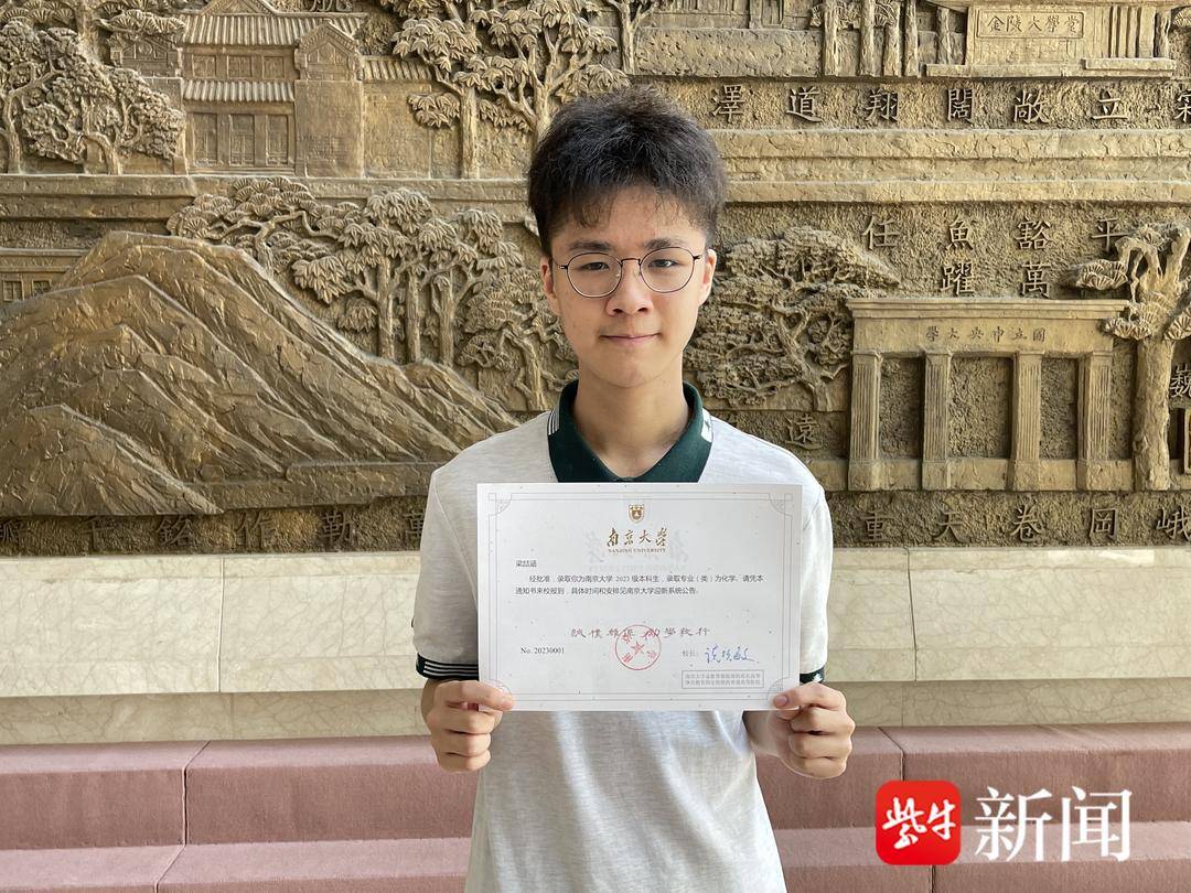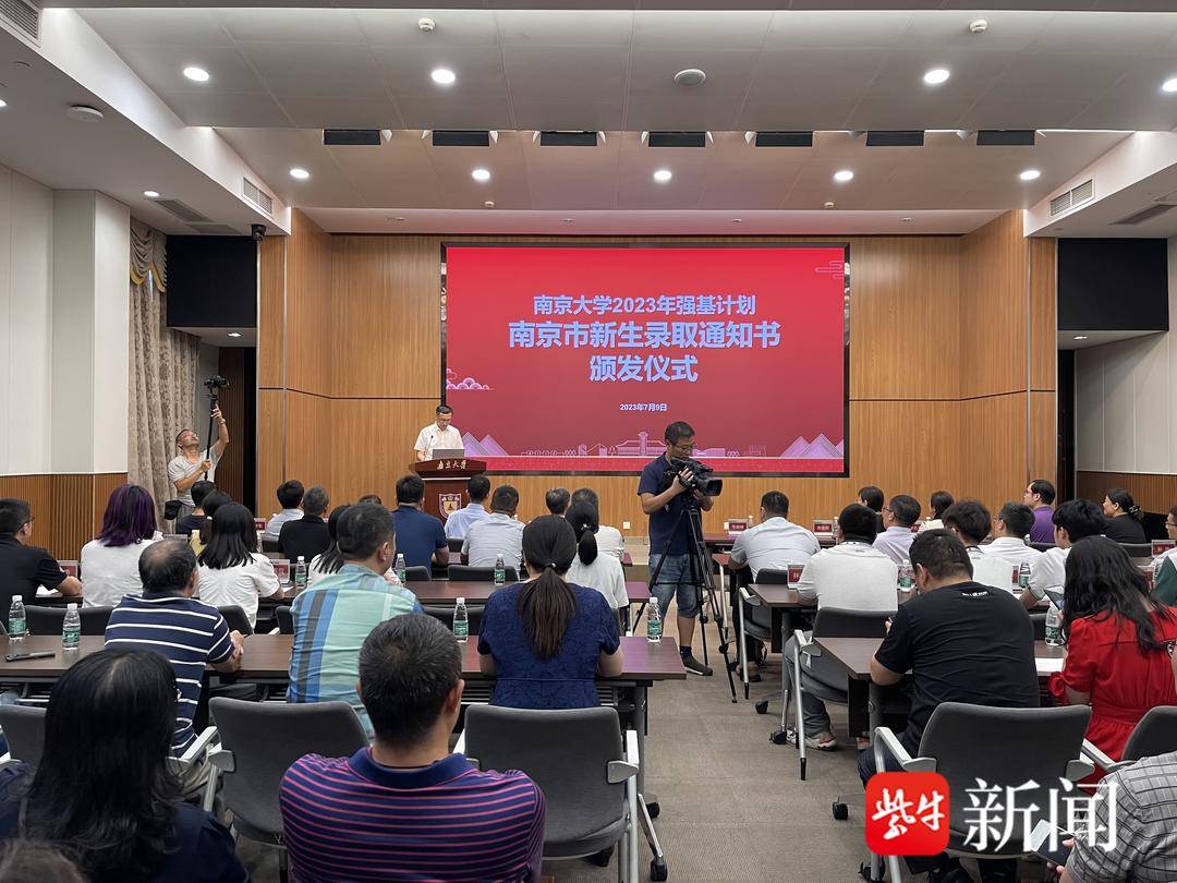 7月9日,南京大学举行了2023年强基计划南京市部分新生录取通知书颁发仪式,多位新生代表来到仪式现场。来自南师附中的男生梁喆涵,成为了2023年南大0001号录取通知书的获得者。