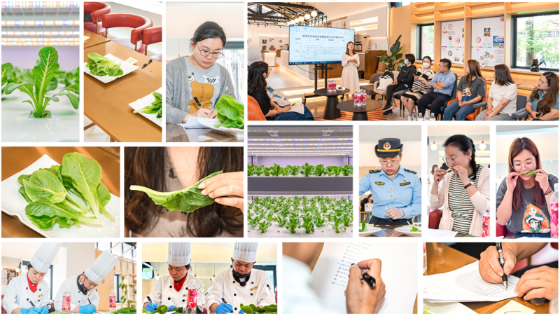 6月6日,15位大众评审对决赛团队种植的“翠恬”生菜进行试吃、打分,上海市长宁区市场监管工作人员进行了现场快检。