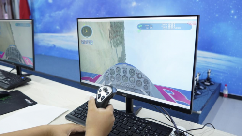比赛围绕飞行主题,设置了航空知识和飞行技能两大赛道,包含竞速飞行、特技竞速、复杂气象、发动机失效返场着陆、航母着舰等多种“实战技能”考验。所谓模拟飞行,是指通过计算机软件对真实世界飞行中所遇到的各种元素,例如空气动力、气象、飞行操控系统、地面飞行引导等进行仿真模拟,并通过外部硬件设备进行飞行仿真操控和飞行感官回馈的一项运动。比赛现场,一排排设备整齐排列,参赛选手手持操纵杆,紧盯电脑屏幕,起飞、爬升、旋转、滑翔、急降……以第一人称视角模拟飞行员飞行。