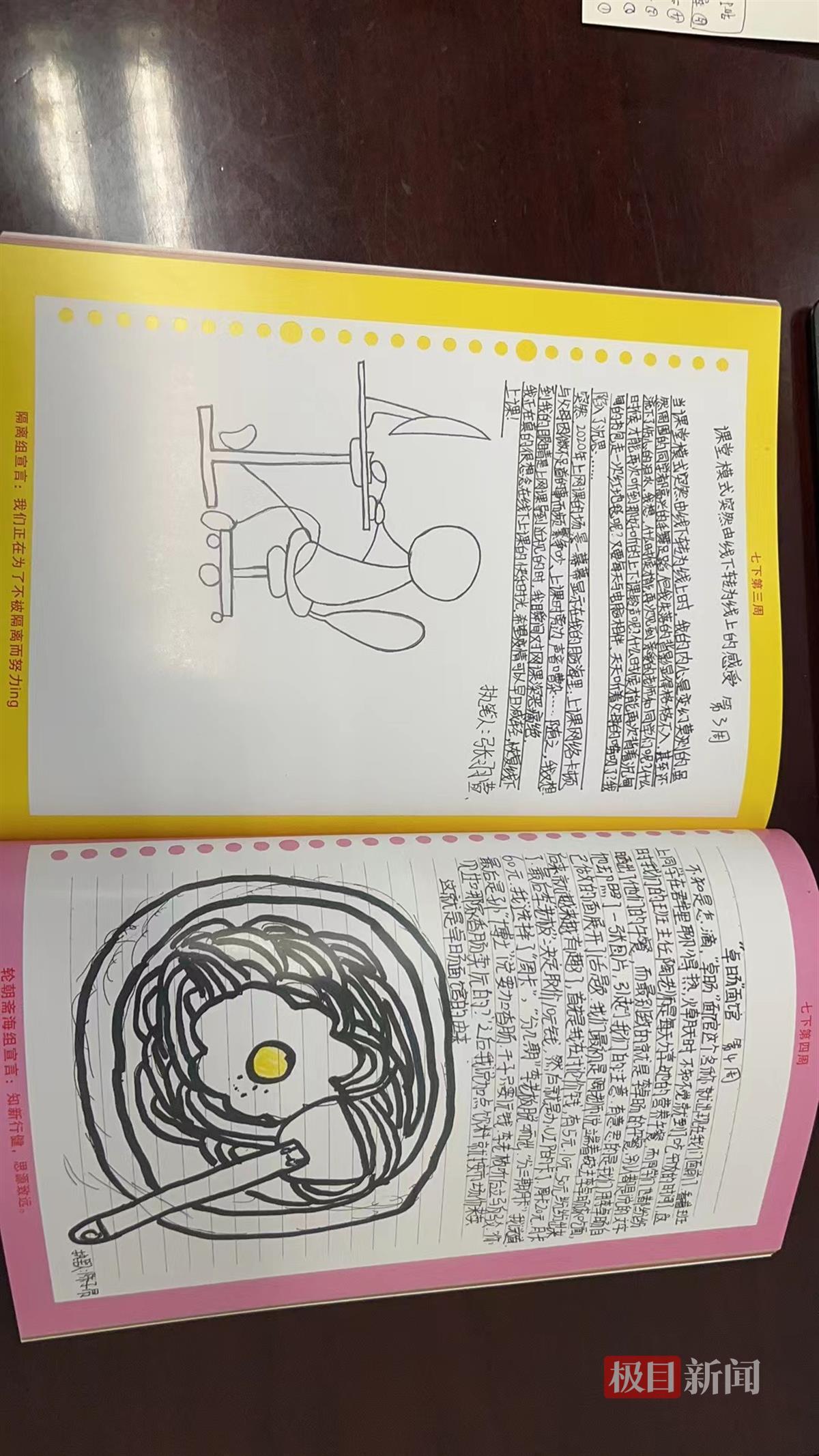翻开《周印玄关》,其中学生在作文页绘制的“面馆店”与“价目表”很是吸引眼球。陶红艳告诉极目新闻记者,当时疫情期间实行线上教学,有些孩子独自在家需要自己做午餐,偶然一次看学生发在群里分享,觉得很有趣,于是让他们比拼一下厨艺。