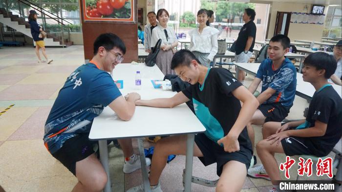 在双方教练的协调安排下,两岸青少年相互搭档,交流切磋球技,并开展个人对抗赛。队员们时而削球防守,时而跃起扣球,纷纷亮出各自的“看家本领”,或精准进攻,或巧妙防守,不时发出阵阵喝彩声。队员们也在休息间隙积极交流,探讨相互的技术特点及技战术的运用,分享彼此训练比赛情况和对乒乓球运动的认知与理解。