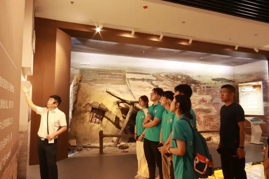 社会实践队参观黄河滩区迁建展览馆,该馆为黄河滩区居民迁建这项史无前例的重大工程留下珍贵的历史记忆,展览馆以“千年梦想乐业安居”为主题,设置了治黄逐梦、同心追梦、蓝图绘梦、乔迁圆梦等展厅。社会实践团队成员进入展厅后,观看了“春风和畅,大河长歌”滩区迁建介绍视频。通过视频大家了解到党领导人民治理黄河、保护黄河、开发利用黄河,逐步使河流变畅、两岸变绿、流域内安居乐业的大河良性发展之路。随后,大家跟随讲解员的步伐参观馆内各个展厅,讲解员通过雷泽遗址,葵丘会盟,孙膑故里,大禹治水等故事深入介绍鄄城千年古县的魅力与发展。