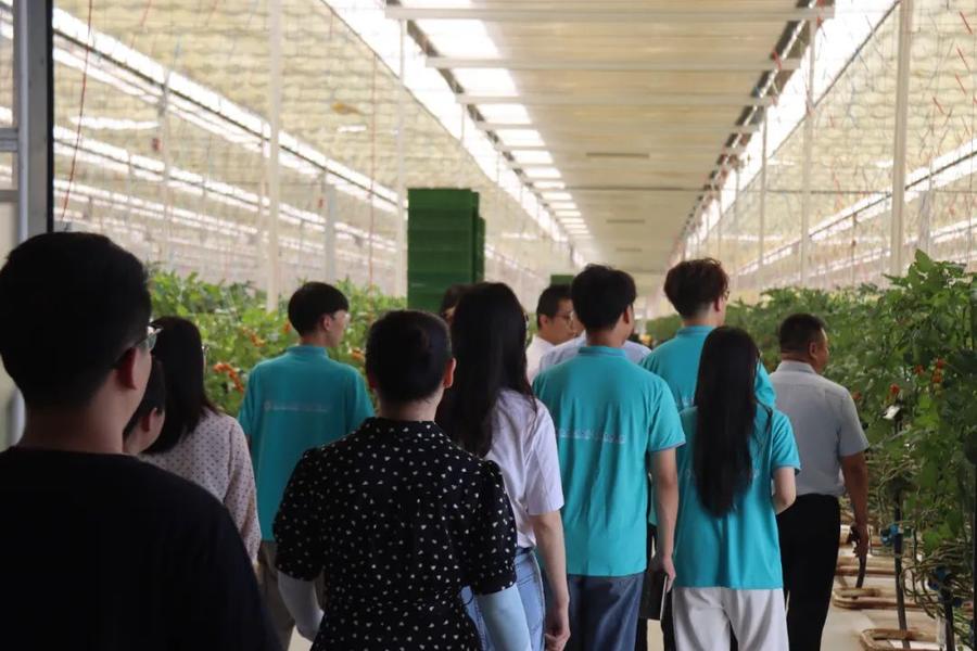 7月9日上午,菏泽校区(分院)社会实践队走进德州智慧大棚,感受农业科技魅力。队员们首先观看了产业园智慧农业技术宣传片,并在工作人员的带领下参观了包装生产区和智慧温室,了解番茄自动筛选线、自动化包装生产线、智慧温室番茄定植及生长情况。通过参观学习,队员们了解到德州智慧产业园大棚为亚洲单体面积之最,这里“黑科技”十足,新技术、新模式不仅颠覆了传统的农业耕种方式,整个生产过程还实现了“零排放”。同学们被智慧温室所运用的高科技深深地吸引,对农业科技及农业耕作方式有了全新的认识。