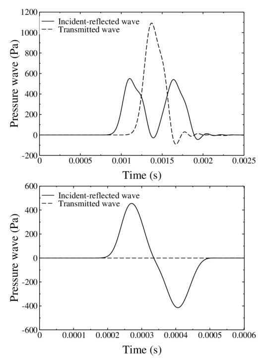 图6:入射波、反射波和透射波的压力信号,上图为空气-水,下图为水-空气。