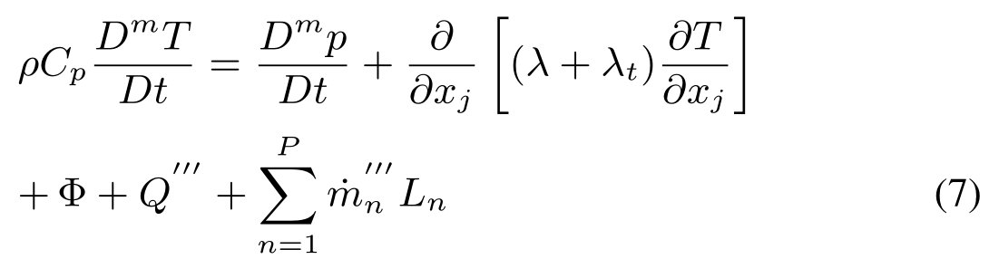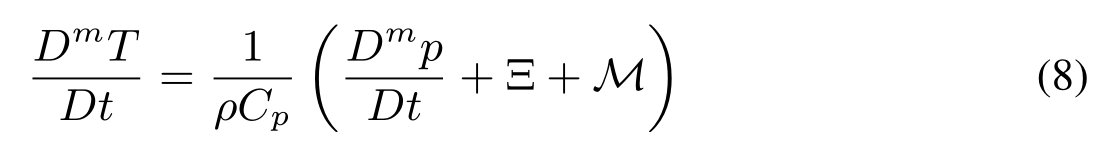 式中Φ为动能的粘性耗散,最后一项为P个不同分量发生相变时的潜热贡献,而混合速度对T平流的物质导数可以简化为: