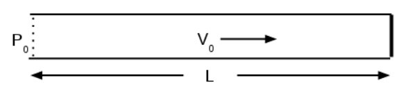 这里给出阀门突然关闭的Joukowsky问题。问题由(图1)一个充满长度为L=1m的水域组成,该区域具有固定的压力边界,压力为P0=1bar。初始化流速为V0=0.0666m/s。根据ModifiedTait状态方程,水的密度为ρ=1000kg/(m^3),声速为c=1481.47m/s。根据理论解,期望压力比为(P0+ρcV0)/P0=2。