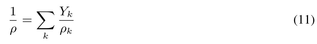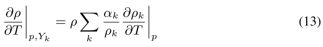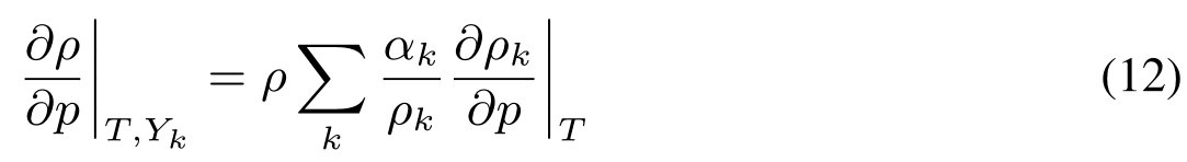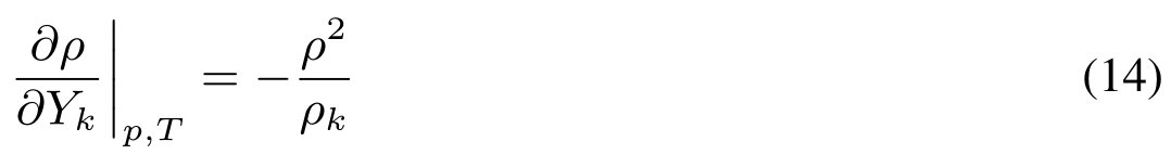 式中ρk=ρk(p,T)。在恒定(T,Yk)下求ρ对p的导数: