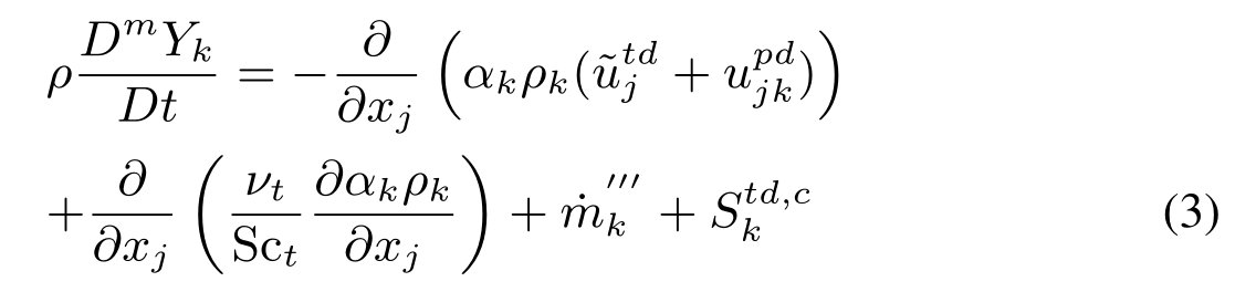 质量守恒方程可以用质量分数(Yk)以物质导数形式重写为: