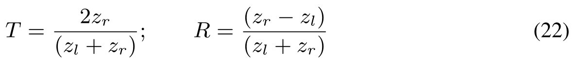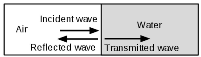 本文模拟了入射压力波在空气-水界面上的传播和反射,即:(a)压力波从空气侧入射,(b)压力波从水侧到达。透射和反射系数由声阻抗给出: