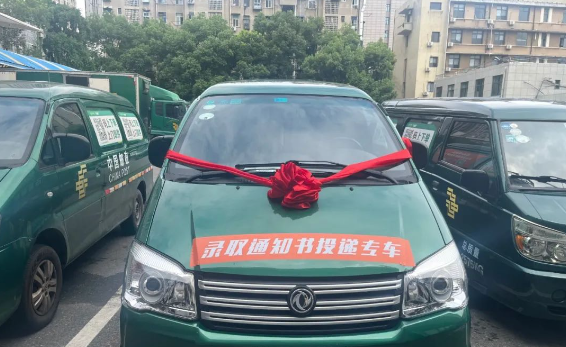 下午3点38分,录取通知书投递专车抵达常青花园小区。