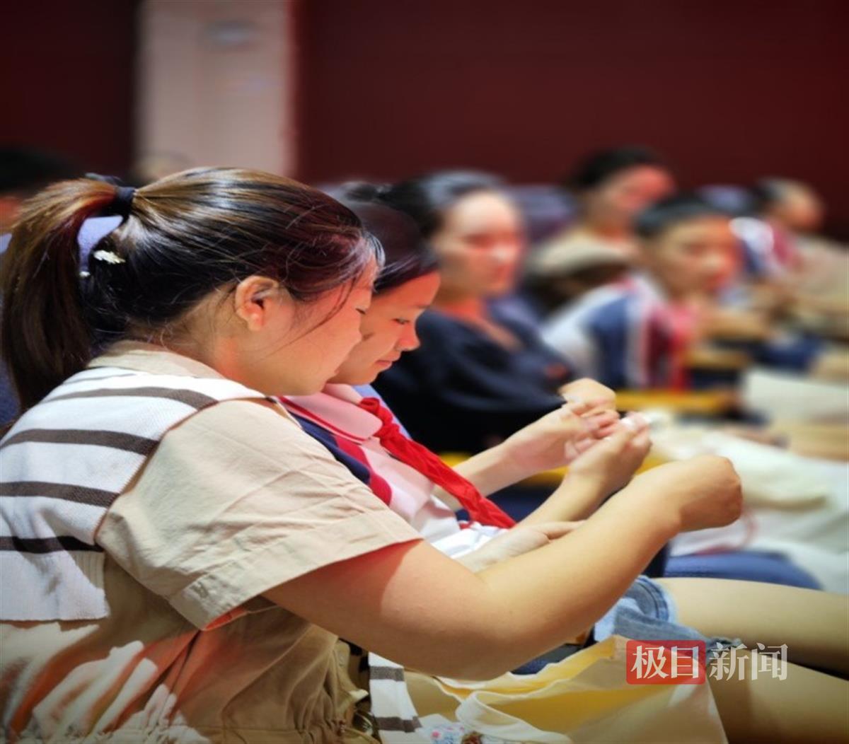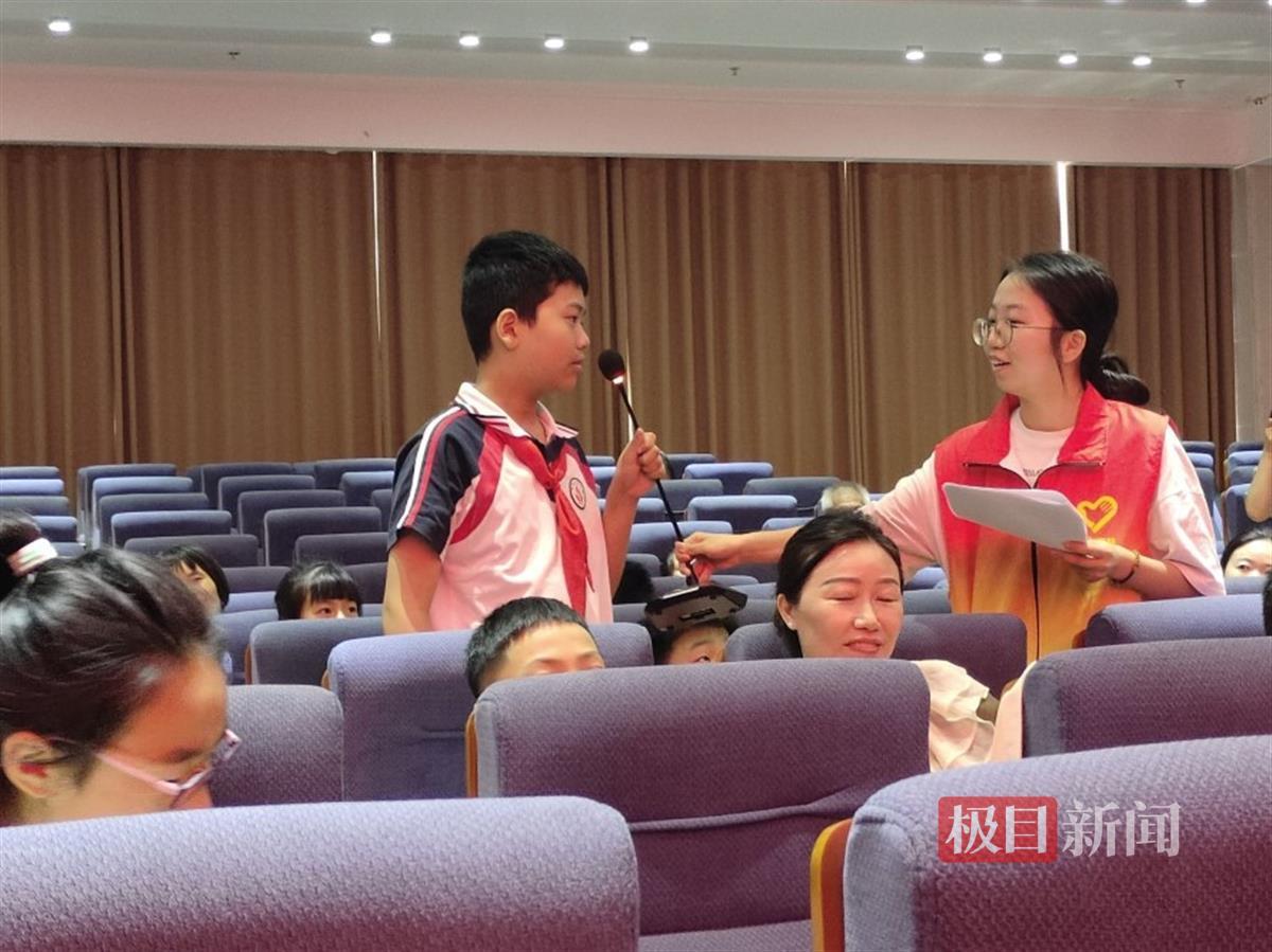 不仅展示古籍修复的过程,队员周子曰贴近小朋友们的兴趣爱好,分别推荐了《伤寒杂病论》《天工开物》《史记》《永乐大典》四本古籍,在孩子们心里埋下憧憬的种子。队员夏思颖立足本土文化,讲解了黄梅戏、黄梅挑花和岳家拳等黄梅县非物质文化遗产的有关内容,让小朋友们直观感受身边非遗的魅力,激发其文化自豪感,生动理解优秀传统文化传承的意义。