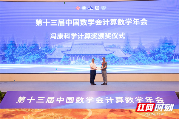 红网时刻新闻7月18日讯(记者蔡娟通讯员邹楚林)数学强则国强。7月16日,第十三届中国数学会计算数学年会在江苏南京举行。开幕式上,陈志明院士、袁亚湘院士、鄂维南院士、张平文院士分别为第十四届、十五届“冯康科学计算奖”获奖者颁发了荣誉证书及奖章。自第十五届起,“冯康科学计算奖”由湖南教育出版社独家资助。