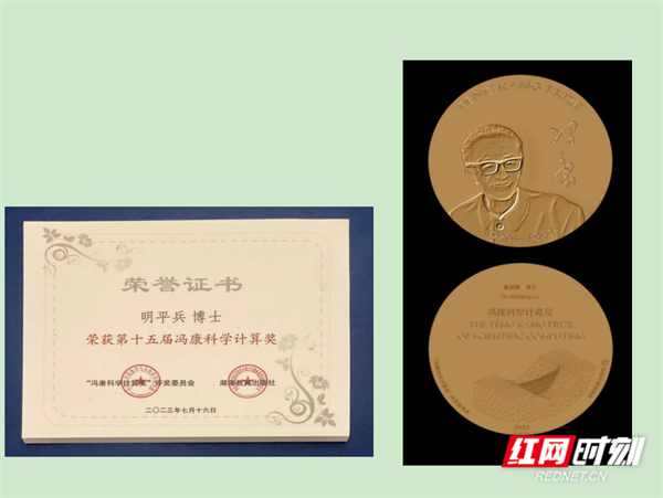第十五届冯康科学计算奖荣誉证书及奖章。