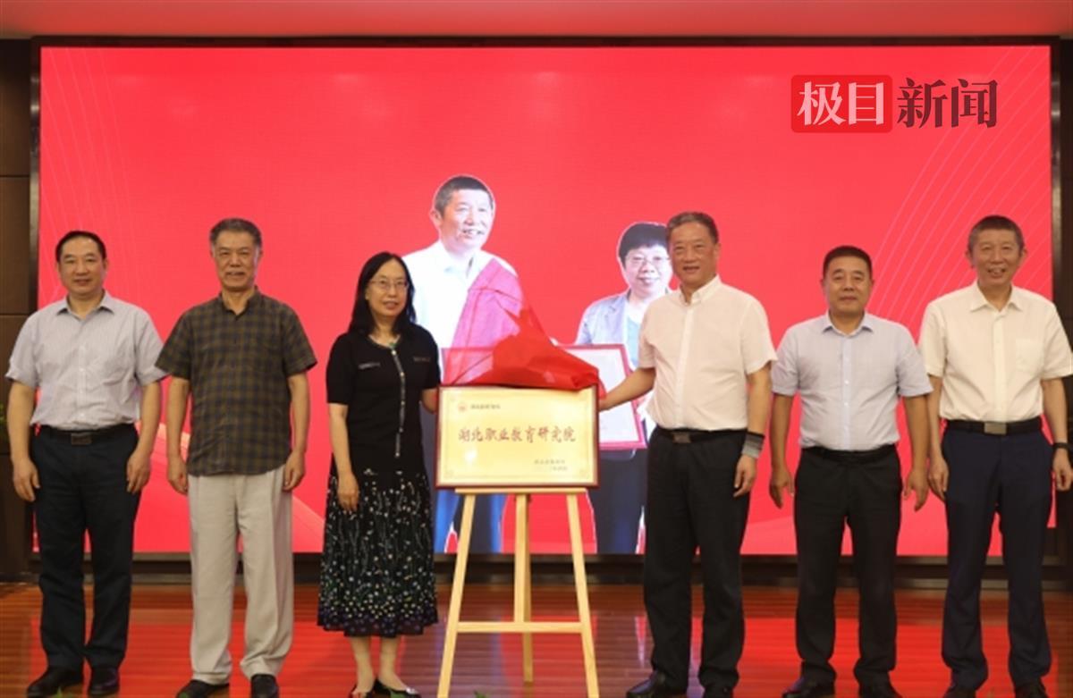 会议现场,与会领导嘉宾共同上台为湖北职教智库——湖北职业教育研究院揭牌。