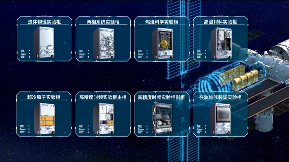 王珂说:“我们有进行流体科学研究的实验柜,还有进行生命科学研究、材料科学研究以及基础物理研究的实验柜。我们提供更好的空间研究条件的变重力科学实验平台,还有高微重力科学实验平台,这些基础的实验平台来共同支持我们后续空间实验发展。”