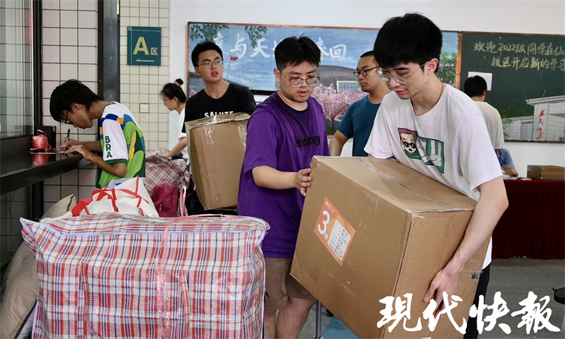 下午3点左右,行知书院学生鲍海文已经收拾好在仙林校区的宿舍。在搬离前的最后几天,他与室友合影留念。作为车长,当天他要为同学们发放箱子、袋子,还要联系同学和答疑。对于这次搬迁,鲍海文有不少感受。“百廿历史在鼓楼校区,我们这一年的学习生活非常有意义。接下来我们要在仙林校区开展全新的学习生活,希望大家都能尽快适应,取得好成绩。”