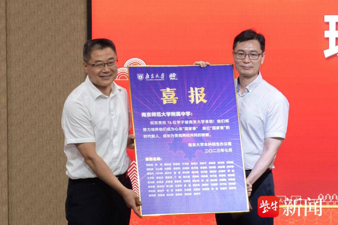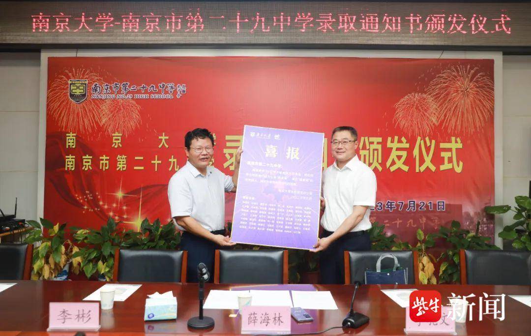 记者了解,7月21日,南京大学还在南京市第二十九中学、南京大学金陵中学举行了2023级本科新生录取通知书现场颁发仪式,两校被南京大学录取的学生人数分别为55人和32人。