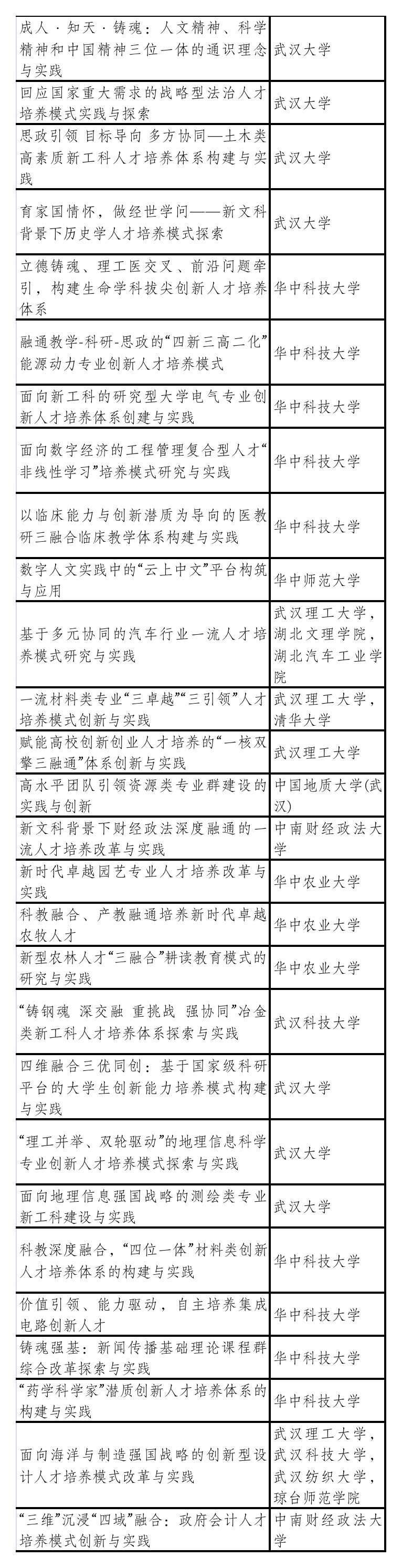 2022年高等教育(本科)国家级教学成果奖获奖项目名单(在汉单位)