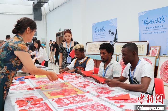 图为浙师大留学生体验剪纸。浙江师范大学供图