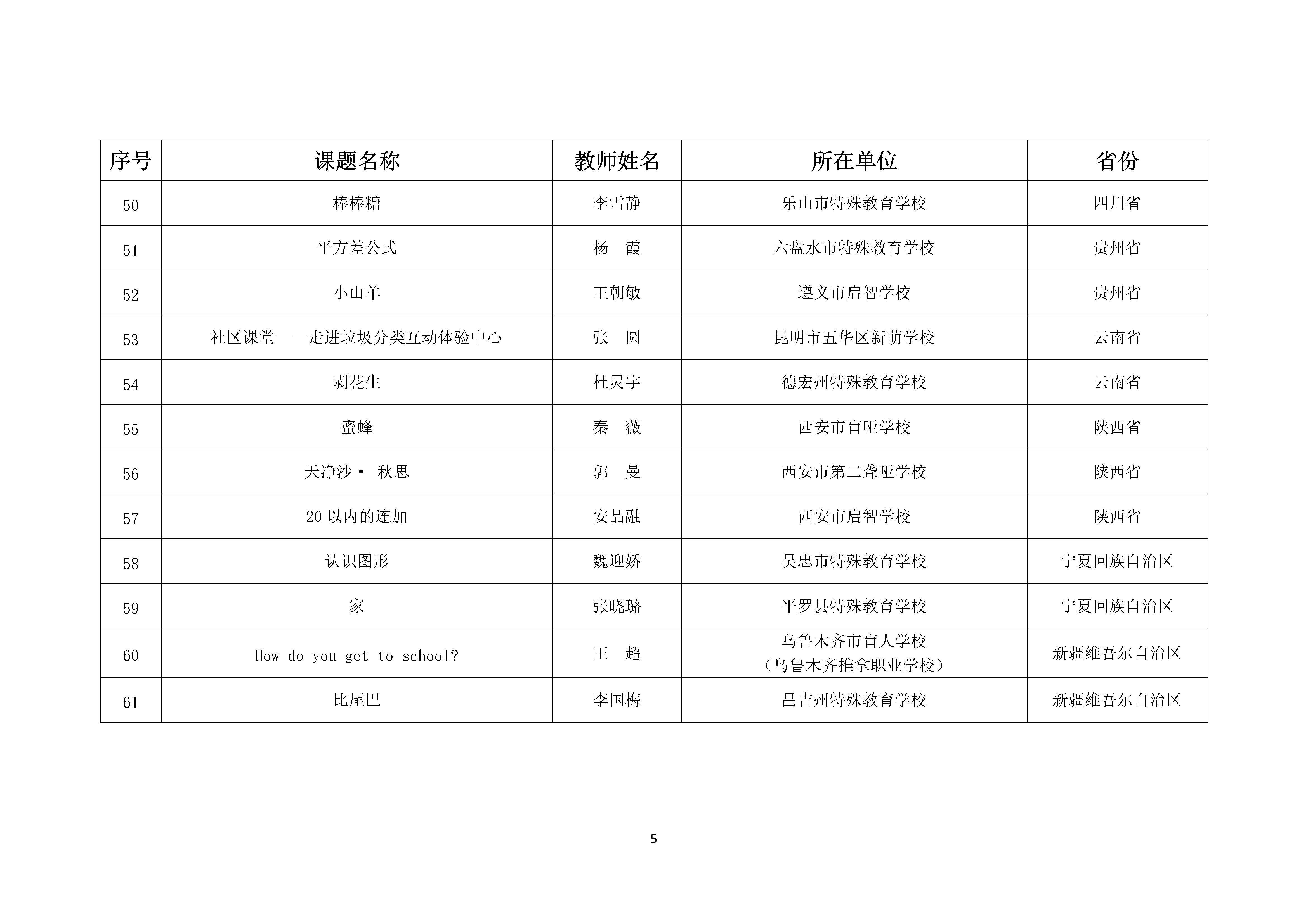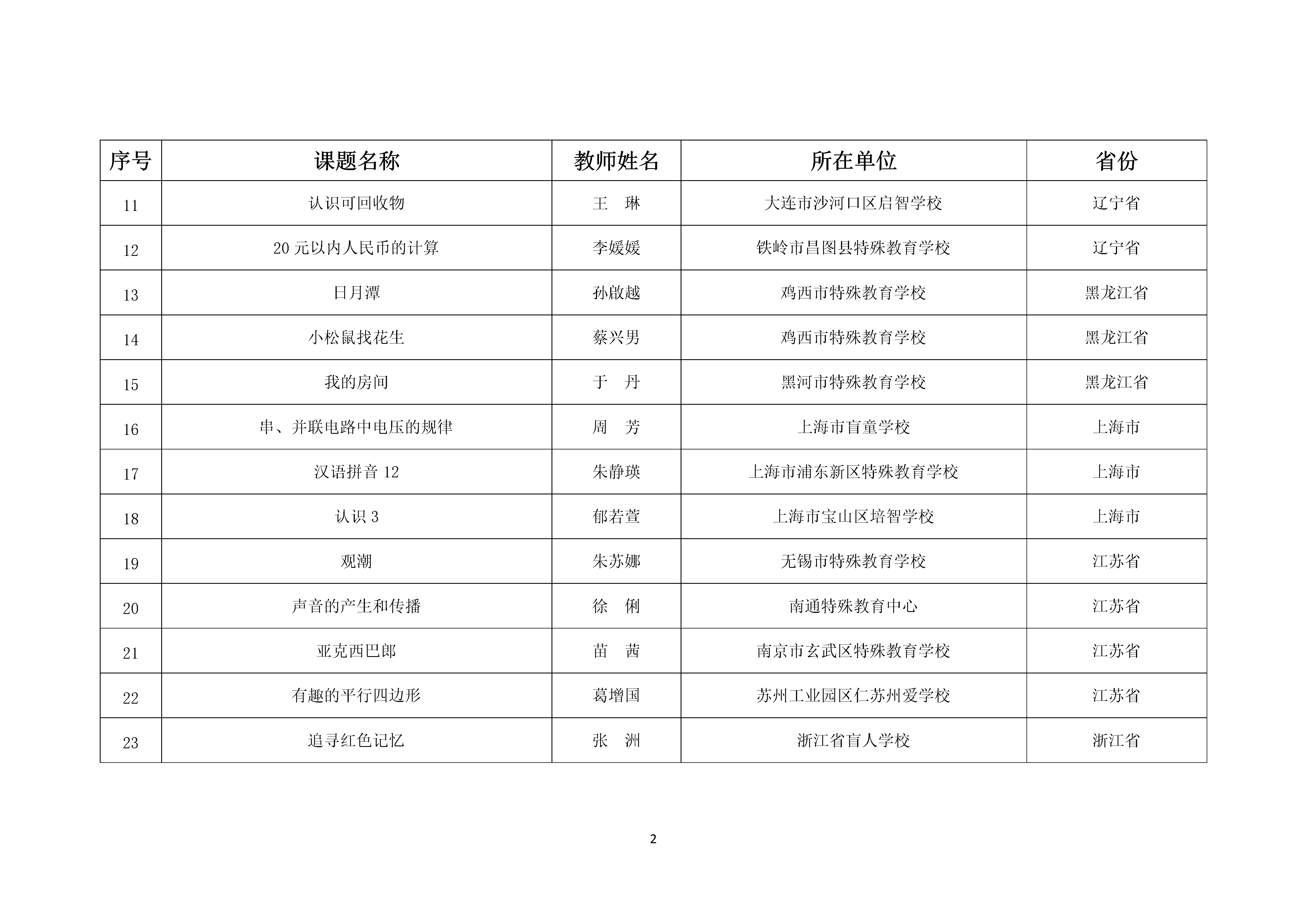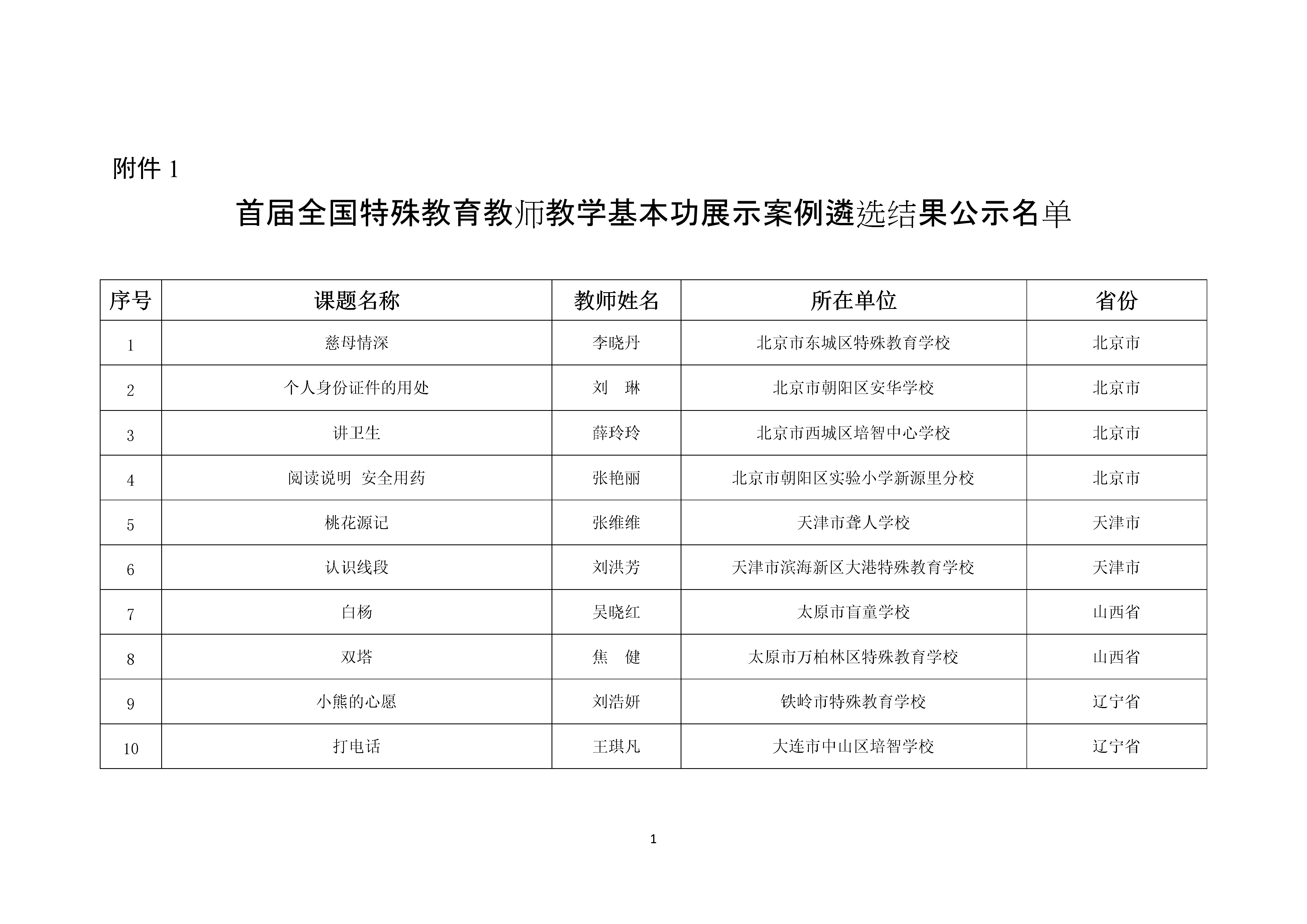 1.首届全国特殊教育教师教学基本功展示案例遴选结果公示名单