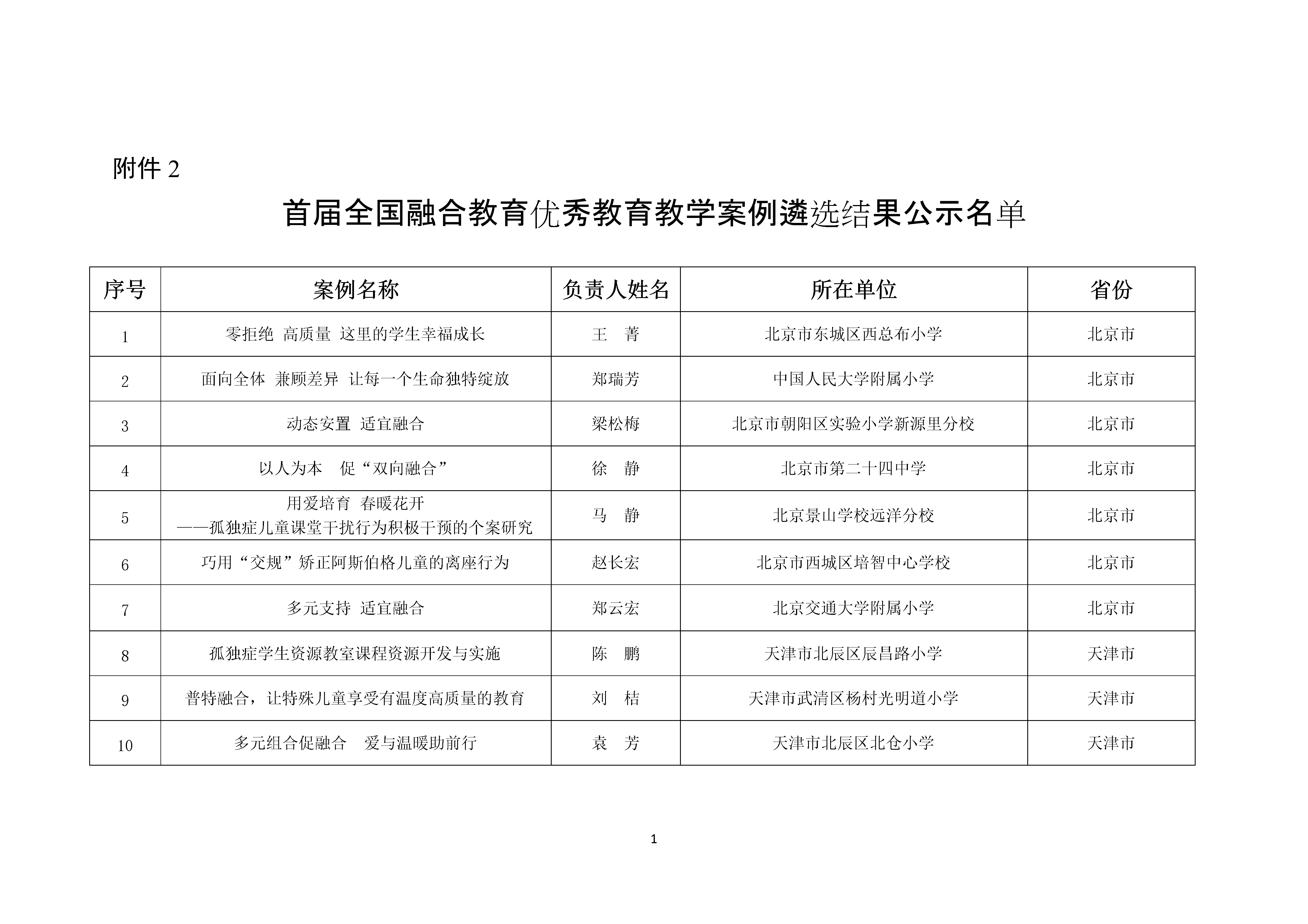 2.首届全国融合教育优秀教育教学案例遴选结果公示名单