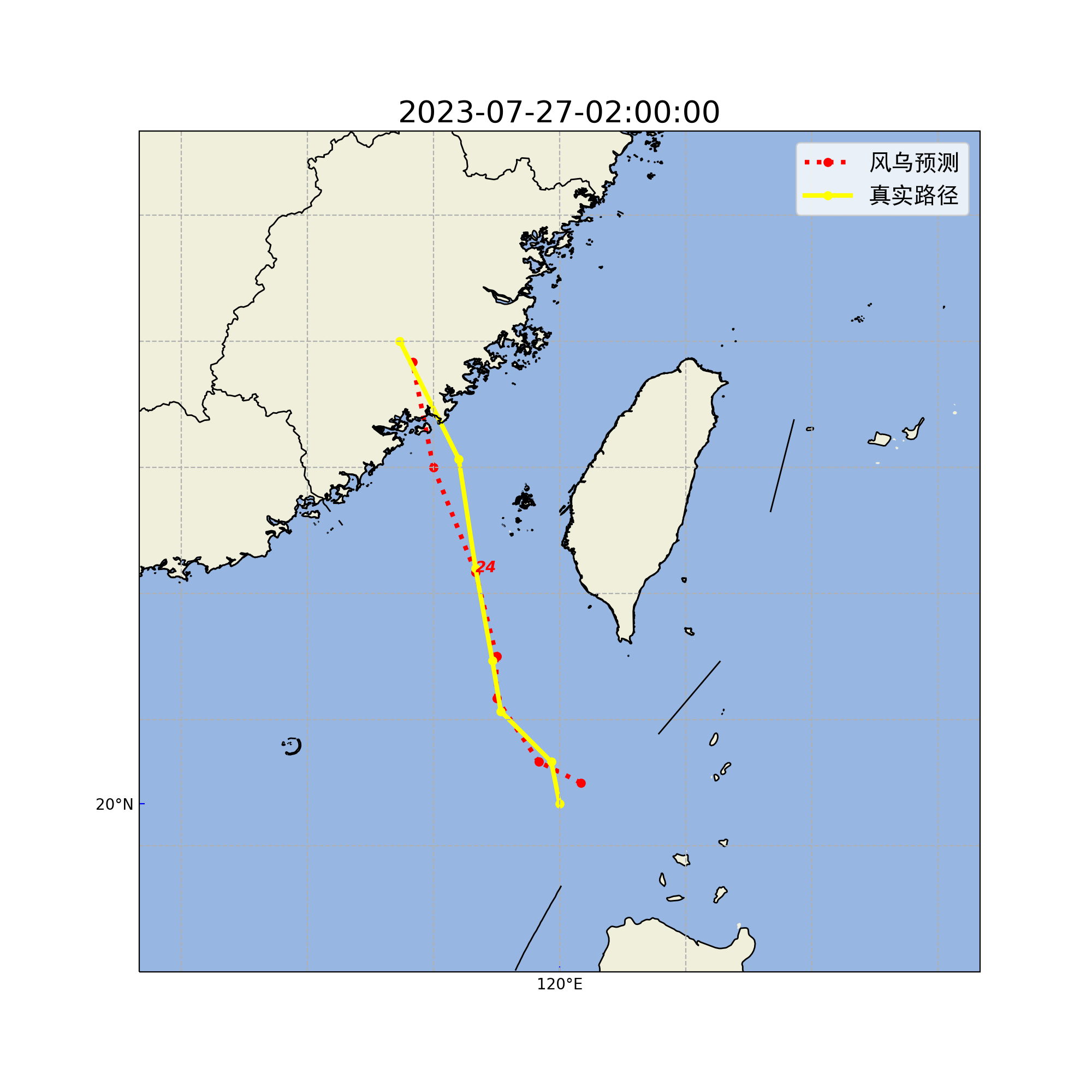 风乌预测“杜苏芮”路径与实际路径对比。图片来源:上海人工智能实验室