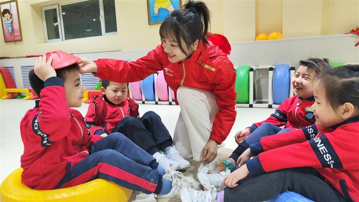 冯梦琦和团队老师从孩子们的兴趣出发,设计出“勇闯特战营”“勇敢小士兵”“穿越火线”等足球主题游戏,大大激发了孩子们参与活动的愿望。她还将传统游戏与足球游戏相结合,创新了几款既符合幼儿年龄特点又富有童趣的游戏,例如123木头人、老狼老狼几点钟等。