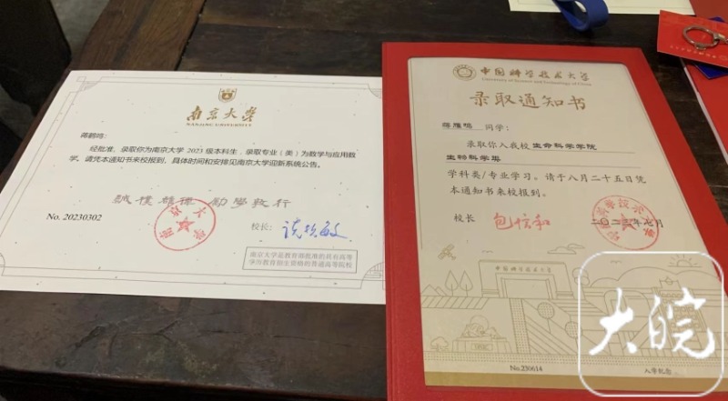 哥哥蒋鹤鸣通过“强基计划”被南京大学数学与应用数学专业录取。弟弟蒋雁鸣被中国科学技术大学生物科学类专业录取,两人也是一对双胞胎。“从教17年来,我第一次遇到双胞胎,对他们的成绩和录取学校都很满意。”班主任张金林带了两人三年,给予他们很高的评价。