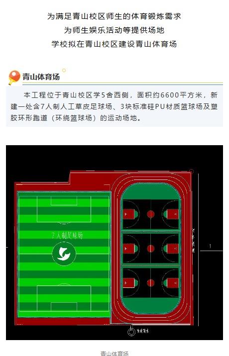 青山校区运动场位于青山校区学5舍西则面积约6000平方米新建有1处7人制足球场三块标准硅PU材质篮球场及塑胶环形跑道体育场现已完成混凝土基层浇筑