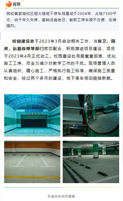 校园建设处针对问题与保卫、国资、后勤保障等部门配合于2023年4月正式动工经过两个多月的建设地下停车场旧貌换新颜