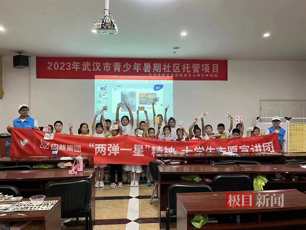 宣讲员付培池和王颖走进武汉东湖高新区关东街道暑期托管班,在荷叶山社区和长山社区开展了首次宣讲活动。“想象一下,如果现在没有了电,会是什么样?”在荷叶山社区,付培池引导在座的小朋友们走进核力发电,向小朋友们讲解了有关核的原理及简单应用。在长山社区,王颖通过动画短片来引导孩子们初步了解生活中关于核能利用的一些现象,介绍了核能的原理及核力发电与核辐射等具体应用。