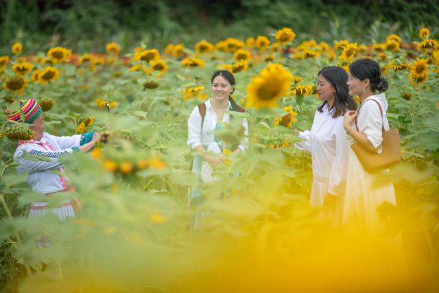 8月9日,游人在云南省文山壮族苗族自治州文山市平坝镇赏花拍照。新华社发(熊平祥摄)