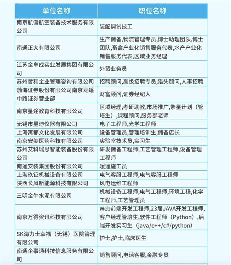 南京林业大学暑假以来走访企业120余家,开展“百日冲刺行动——南京林业大学2023届离校未就业暨2024届毕业生实习网络招聘会”,目前已征集70余家优质企业,提供有效岗位4884个。