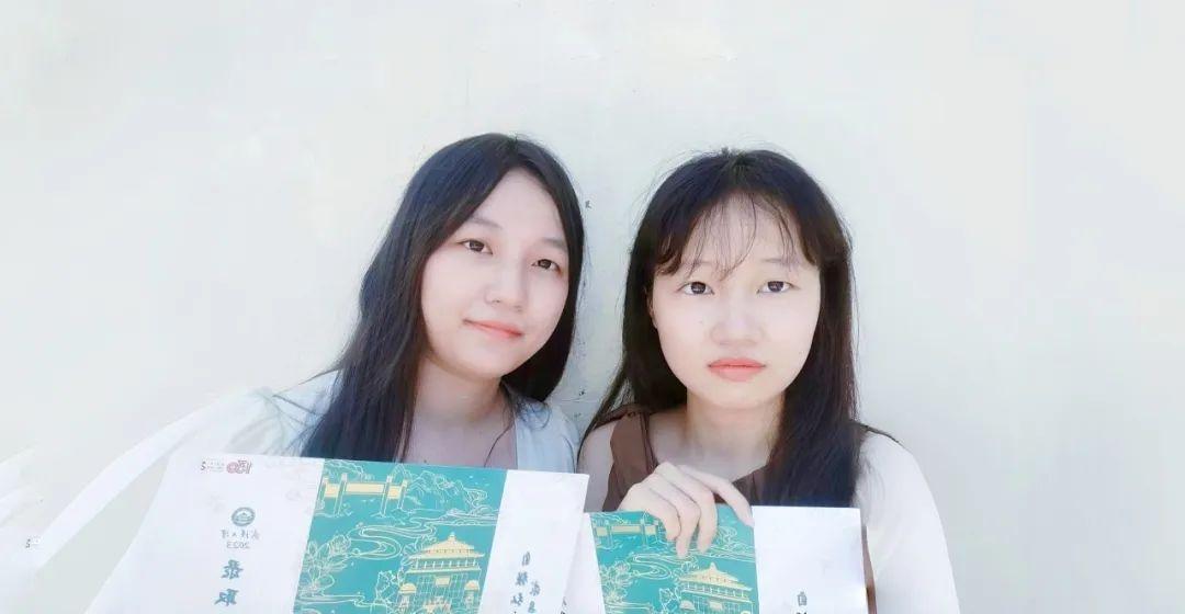 赵欣格(左)与朱嫣雨(右)在收到录取通知书后的自拍合影