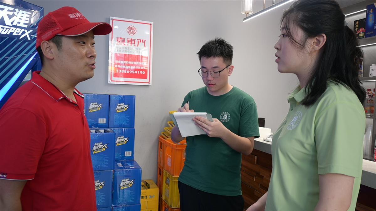 除了了解源头,实践队也在消费环节进行了详实的调查。实践队伍在武汉和潜江随机选取了几家售卖小龙虾的餐厅,通过对店家和食客的采访,了解消费环节小龙虾壳处理情况以及消费者对于小龙虾壳处理的了解程度以及支持情况,同时实践队伍也向受访者介绍了小龙虾壳的利用价值,并发出环保倡议。