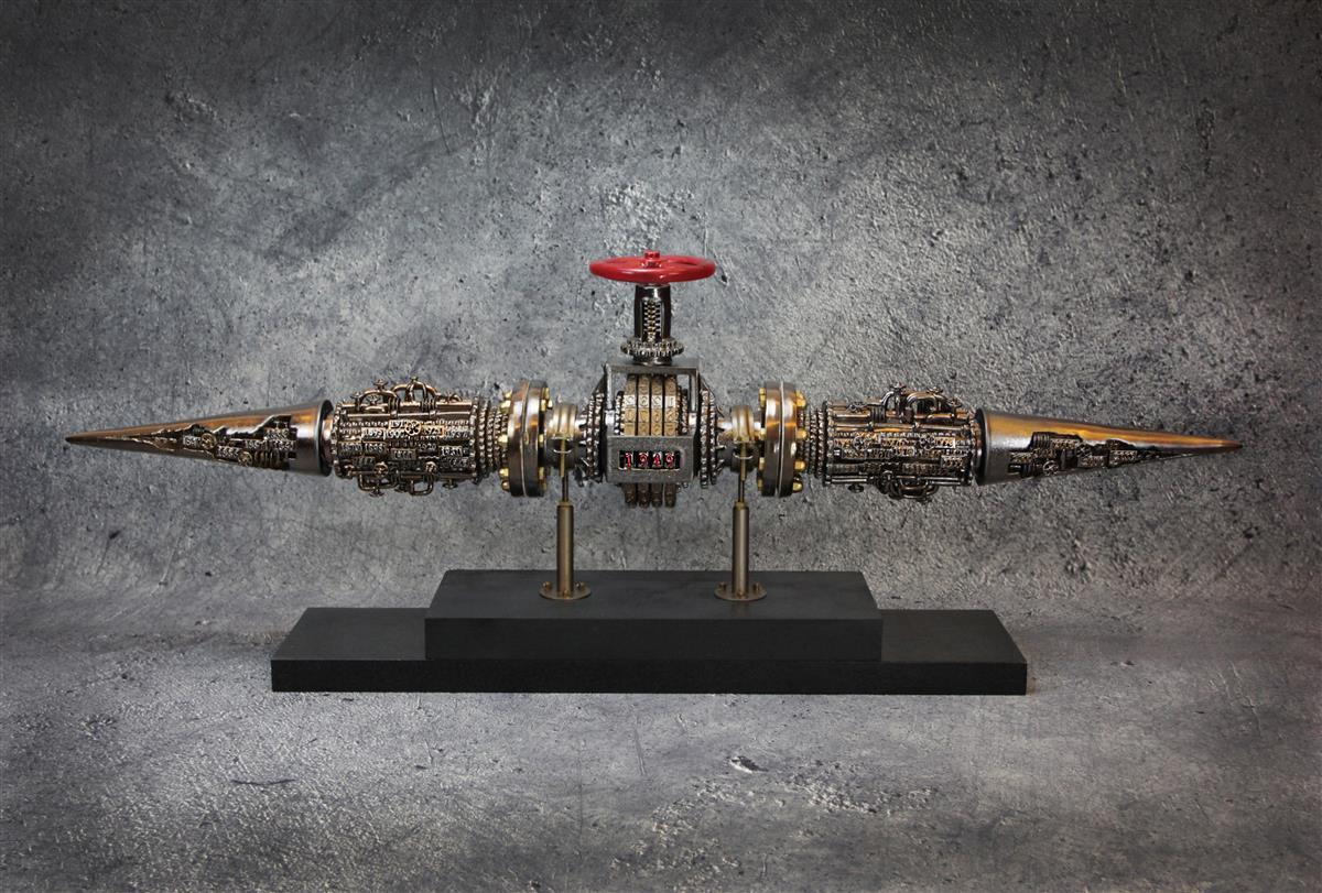 研究生时期的第一件作品《孵化》就展现了韩俊在陶艺方面的天赋。作品由75个小件构成,分为三套,75个蛋壳呈现不同的开裂程度,不同工业元素的器件从开裂处迸发出来,设计展现出韩俊对于生态环保的思考。