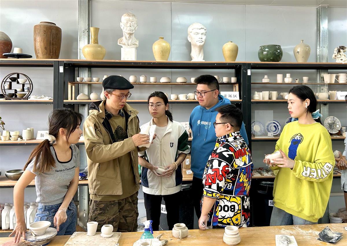 “韩老师擅长鼓励式教学,不管是什么样的作品,他都能找到优点并鼓励。”武汉学院张兴老师说。学生袁雨淳初学拉坯时掌握不好力度,做出的成品都歪歪扭扭。韩老师从不批评,而是鼓励她“将错就错,拉出自己的风格和个性”。受到鼓舞,袁雨淳主动加练,在实验室里比别人多做了几十幅作品。“现在小袁成了班里最会拉坯的学生了,”韩俊欣慰地说。韩老师的鼓励式教育给了小袁信心,点燃了她对陶艺的兴趣。未来她想将陶艺的快乐分享给更多人。