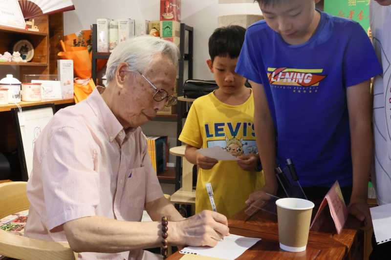 同学们找著名文化学者汪兆骞老师要签名。主办方供图