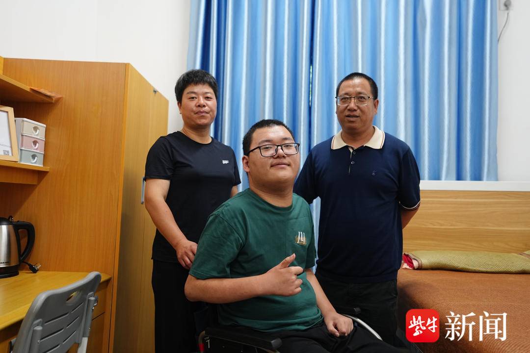 报到现场,记者见到了来自启东的“轮椅男孩”董亦超。他曾于2014年被确诊脊髓前动脉闭塞综合征,脖子以下无法动弹,仅靠两根手指写字。但他并没有向命运低头,经过治疗,奇迹般地回到课堂,以超出常人的毅力努力学习,在今年高考取得了632分、历史类全省第741名的优异成绩。被东大录取在人文学院2023级文科试验班类。