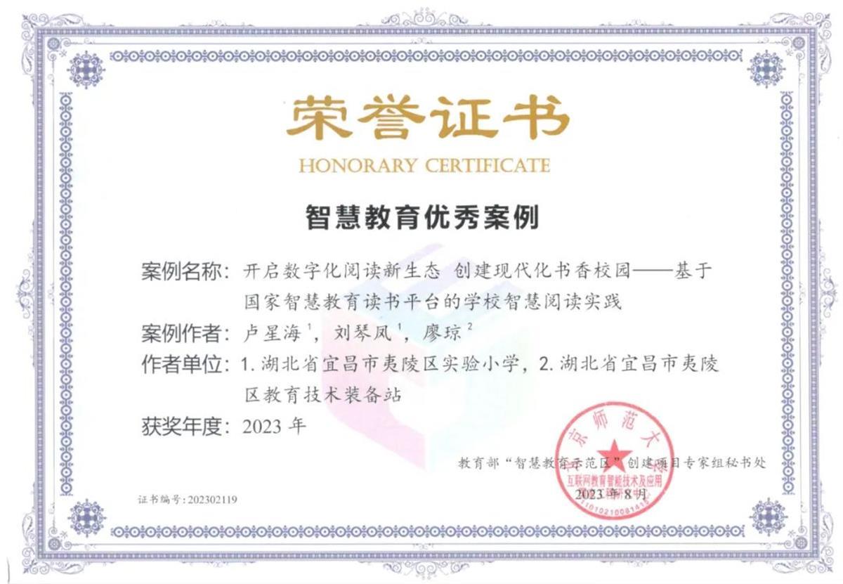 此外,在2023全球智慧教育大会优秀案例评选中,宜昌市共有3件案例入选,市教育信息技术中心的《统建共享、创新应用智慧教育平台》、西陵区唐家湾中小学的《“小”先生 “大”课堂——国家平台助力项目式学习激活“课后三点半”》、夷陵区实验小学的《开启数字化阅读新生态 创建现代化书香校园——基于国家智慧教育读书平台的学校智慧阅读实践》,被收录编入会议刊物《2023年度智慧教育优秀案例》。