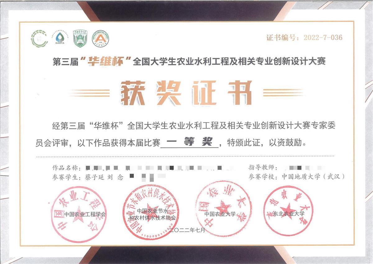 获奖证书