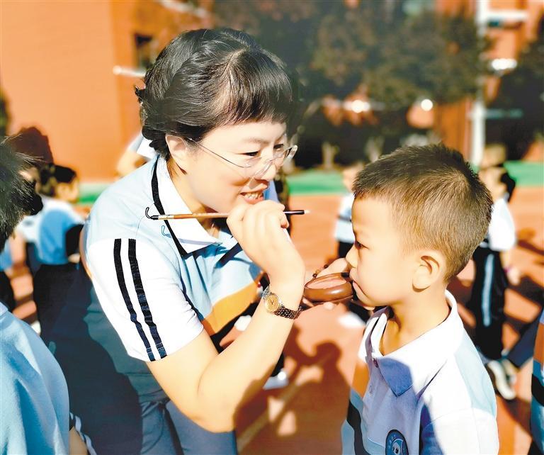 马玲在新学期行“开笔礼”,为孩子们点朱砂开智慧。受访者供图